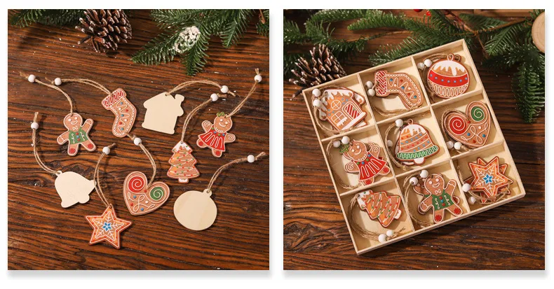 Christmas Nine-square Grid 18pcs Wooden Pendant Grinch Gingerbread Man Doll Decoration